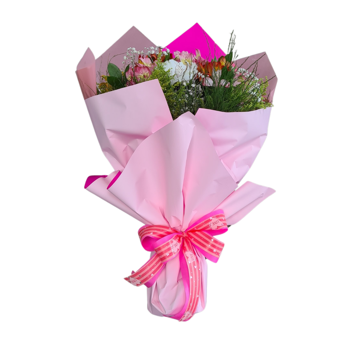 Buquê grande com 24 galhos de austroemerias de cores variadas.